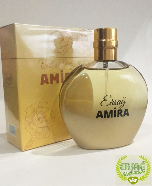 Amira Parfüm; Siyah frenküzümü, portakal ve pembe greyfurt kokularıyla üst notaları oluşturup, orta notalarında taze kavun ve kayısı çiçeği, değerli sandal ağacı ve beyaz misk gibi notalarla bütünleşerek etkileyici kokuyu tamamlar.